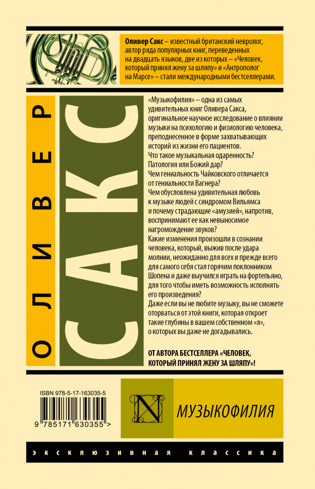 💳 Оплатить за товар можно при получении 🇰🇿 Есть бесплатная доставка по Казахстану от 1 дня 🎁 Копите бонусы с каждой покупки Серия: Эксклюзивная классика (Лучшее) Что такое музыкальная одаренность? Патология или Божий дар? Чем гениальность Чайковского отличается от гениальности Вагнера? Чем обусловлена удивительная любовь к музыке людей с синдромом Вильямса и почему страдающие «амузией», напротив, воспринимают ее как невыносимое нагромождение звуков? Какие изменения произошли в сознании человека, который, выжив после удара молнии, неожиданно для всех и прежде всего для самого себя стал горячим поклонником Шопена и даже выучился играть на фортепьяно для того, чтобы иметь возможность исполнять его произведения? Даже если вы не любите музыку, вы не сможете оторваться от этой книги, которая откроет такие глубины в вашем собственном «я», о которых вы даже не догадывались. |