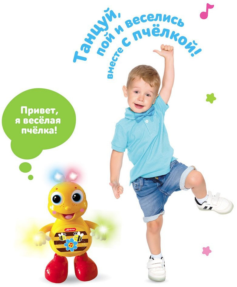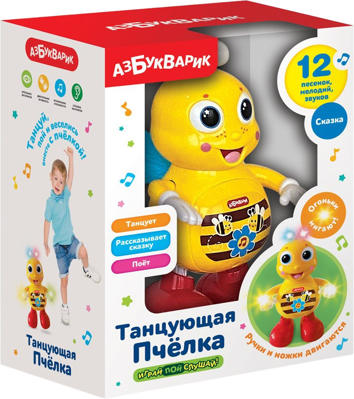 Азбукварик Игрушка музыкальная «Танцующая пчелка»В данный момент этот товар отсутствует в продаже. Возможно, у нас найдется аналогичный или похожий товар здесь. Устрой зажигательные танцы вместе с веселой пчелкой! Игрушка работает в двух режимах: «Песенки и мелодии» и «Сказка». В первом режиме пчелка будет петь веселые песенки и танцевать под музыку. Во время танца пчелка двигается в разные стороны, а ее голова и лапки светятся! Во втором режиме пчелка расскажет интересную сказку «Пчелка и цветок» (в этом режиме игрушка не танцует). Веселые танцы с пчелкой развивают у ребенка чувство ритма, стимулируют двигательную активность. Забавные песенки легко выучить наизусть и подпевать. А сказка — отличный вариант для отдыха после активных игр! |
