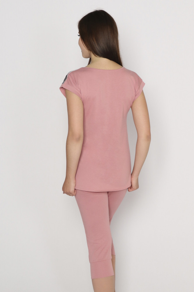бриджи: 100% хлопок; футболка: полочка 100% п/э, спинка 100% хлопок