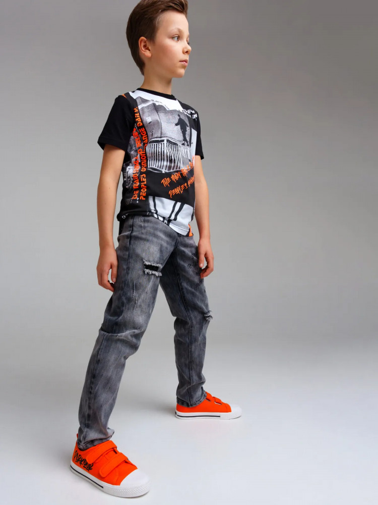 Джинсы для мальчика. Посадка regular fit — классический крой со слегка зауженным силуэтом от колена. Пояс с внутренней утяжкой. Стильные и практичные — идеальный выбор для повседневного использования.