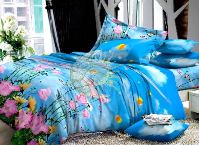 Комплект постельного белья «Чарующая ночь Зима-Лето» изготовлен из ткани поплин (100% хлопок), которая вырабатывается из тонкой хлопчатобумажной пряжи. При этом количество нитей намного больше, чем у бязи или сатина. Всё это делает поплин тонкой, но плотной тканью с повышенной мягкостью и благородным блеском. Рисунки, нанесённые на поплин, выглядят очень ярко и чётко.