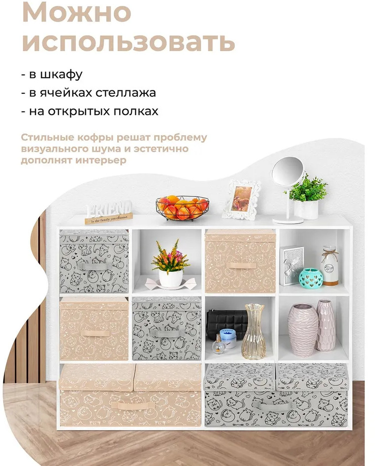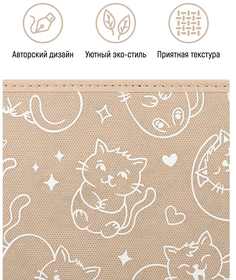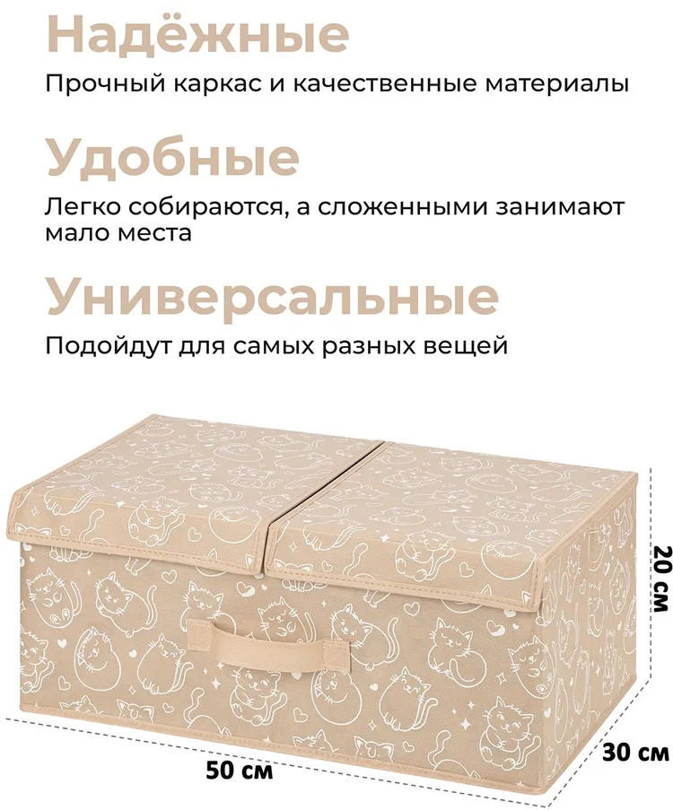 Купила для хранения сезонных шапок и шарфов. Удобно, что есть два отделения, короб не мягкий, устойчивый. Рекомендую!