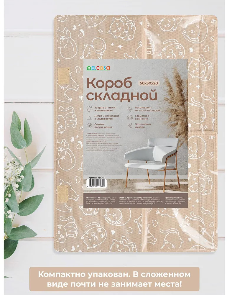 El Casa Короб для хранения вещей складнойВ данный момент этот товар отсутствует в продаже. Возможно, у нас найдется аналогичный или похожий товар здесь. Короб складной 50×30×20 см с двумя крышками на липучках поможет организовать хранение в самых разных помещениях: в прихожей, гостиной, спальне, детской и любых других комнатах. Такие кофры эстетично выглядят. Их можно разместить не только в шкафу, но и на открытых полках. Помогут организовать систему хранения самых разных вещей в едином стиле, будь то игрушки, одежда, канцелярия, косметика, нижнее белье, носки, рукоделие или другие мелочи. Органайзер выполнен из нетканого материала и имеет плотные картонные вставки. Благодаря ручке коробку можно выдвигать как ящик. Такой контейнер станет удобным дополнением интерьера и поможет эффективно использовать каждый сантиметр пространства в вашем доме. |