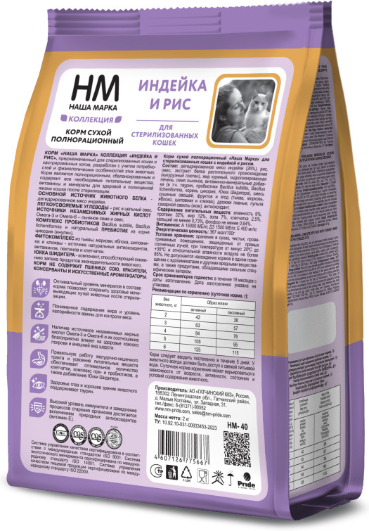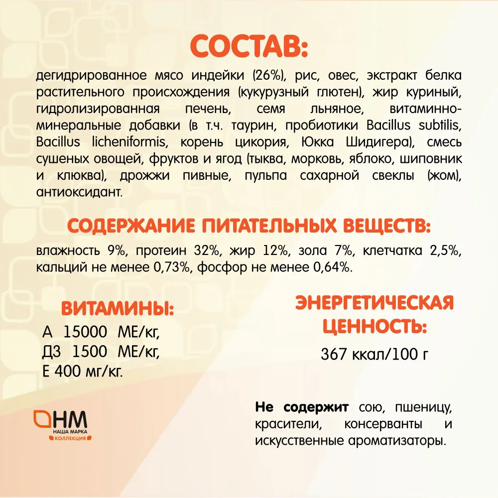 Наша Марка Корм для стерилизованных и кастрированных кошек с индейкой и рисом