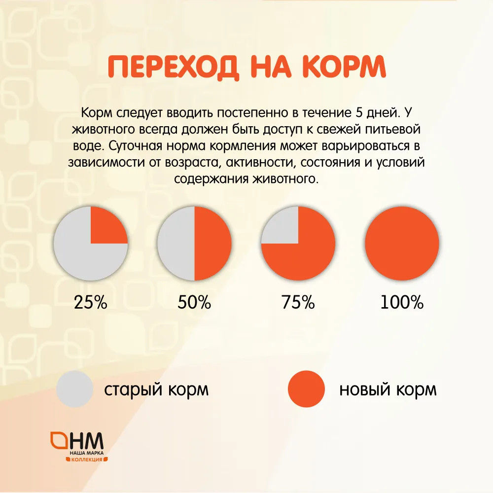 Корма премиального класса «Наша Марка» отличаются высоким качеством, приемлемой ценой и оригинальной упаковкой. Производится на современном заводе в Гатчине. |