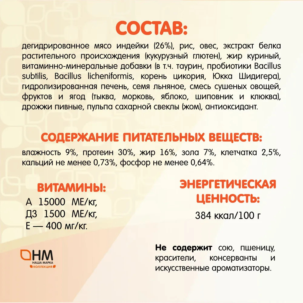 Наша Марка Корм для взрослых кошек с индейкой и рисом
