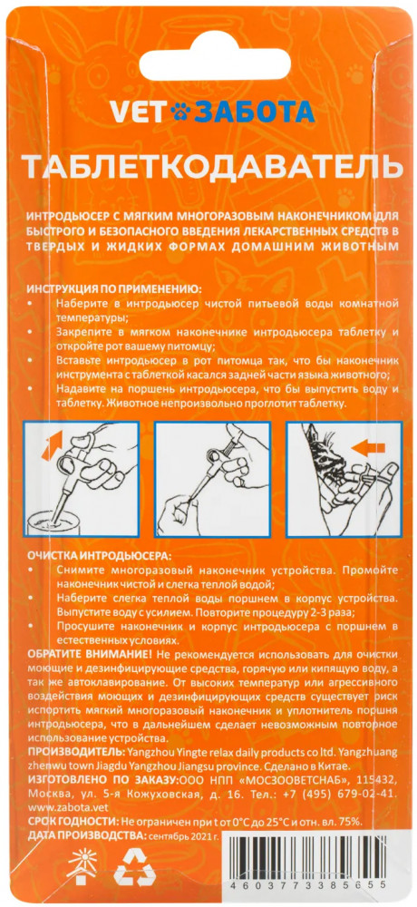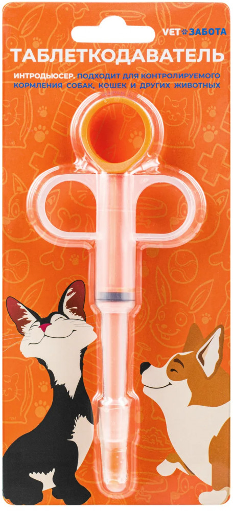 Интродьюсер с мягким многоразовым наконечником для быстрого и безопасного введения лекарственных средств в твердых и жидких формах домашним животным.