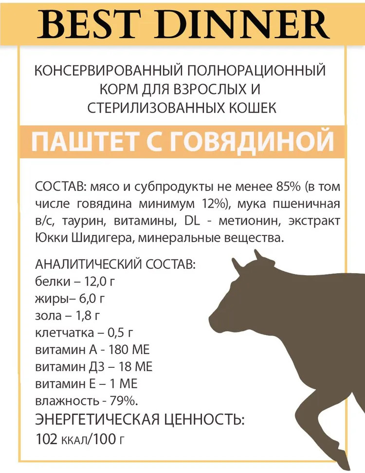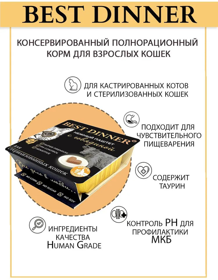 Best Dinner Паштет для стерилизованных кошек с говядиной