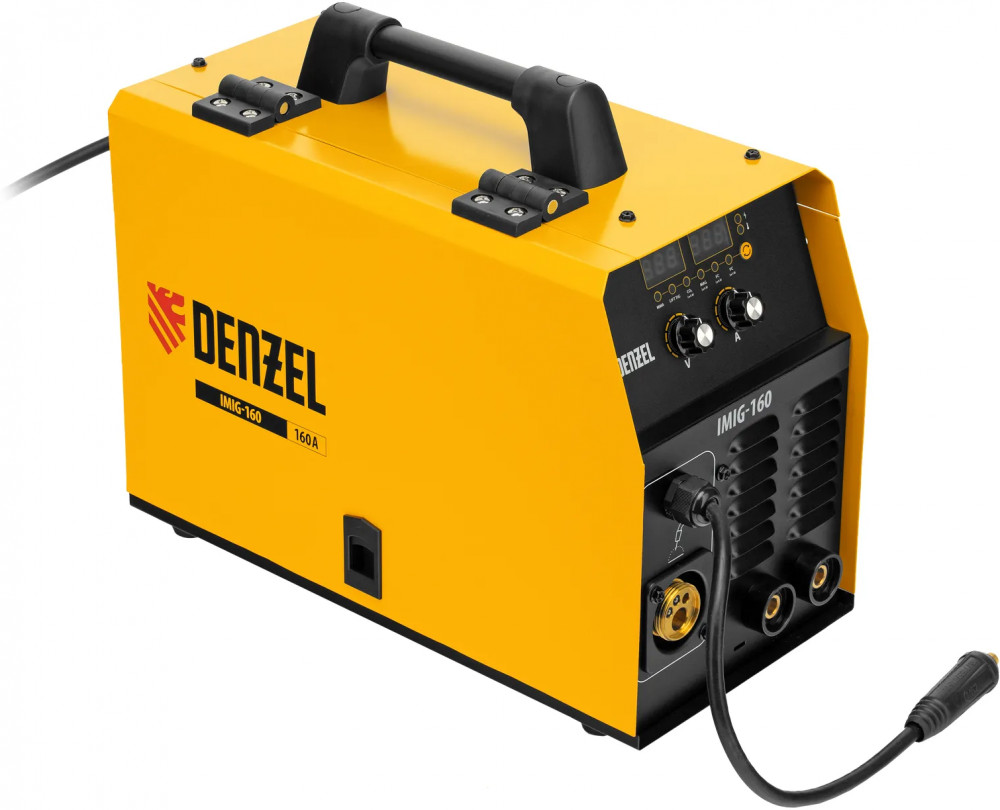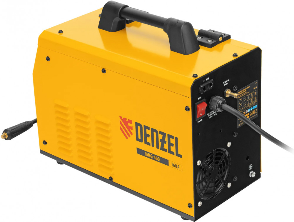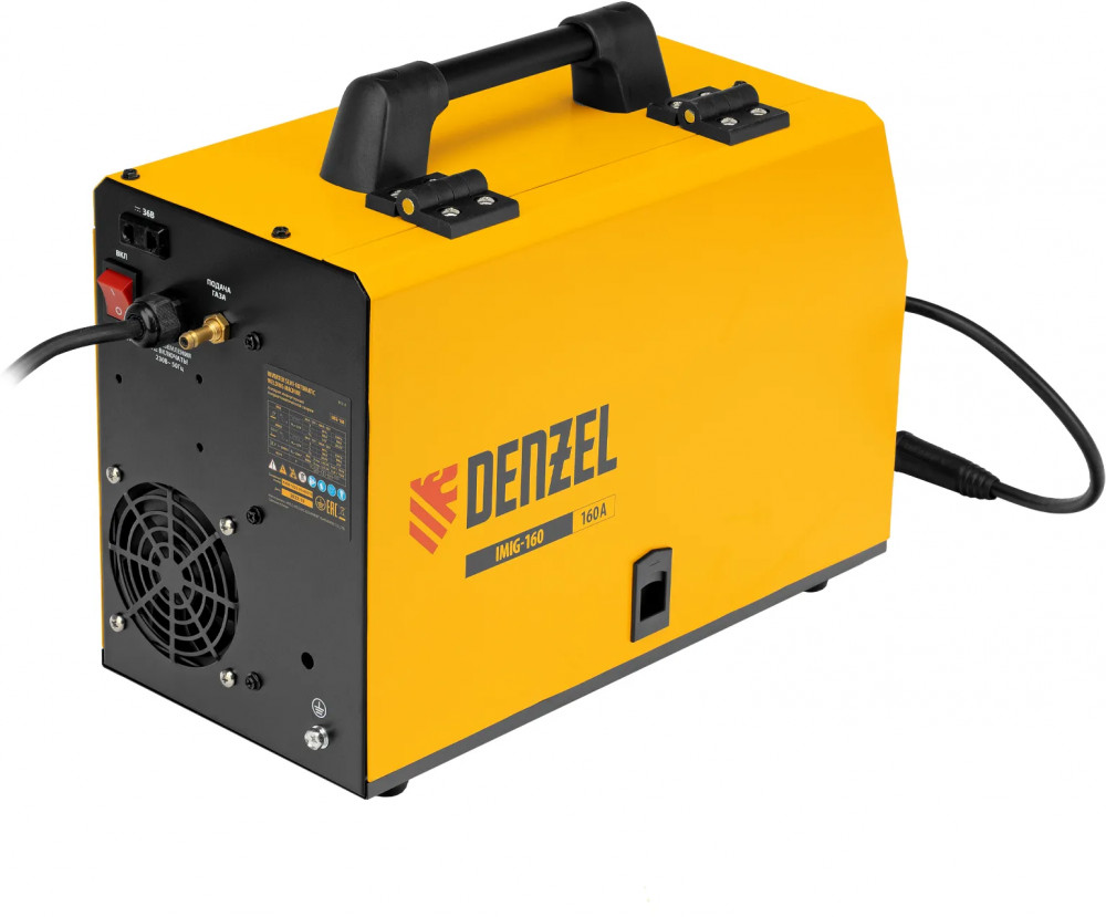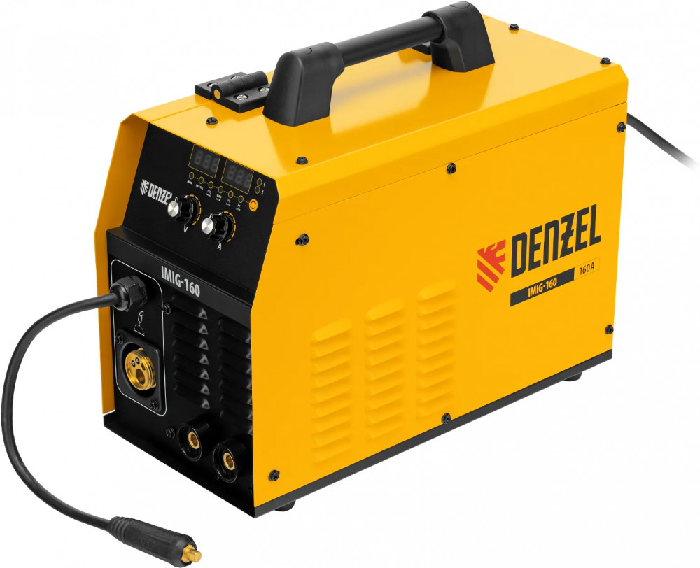 Инверторный аппарат полуавтоматической сварки Denzel IMIG-160 работает со сварочным током до 160 А, характеризуется продолжительностью включения 60% и совместим с катушками до 5 кг. Используется для сварки углеродистых и нержавеющих сталей с использованием постоянного тока. Эффективен для работы с тонкостенными заготовками.