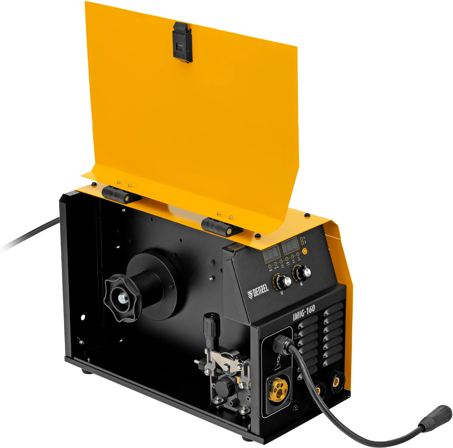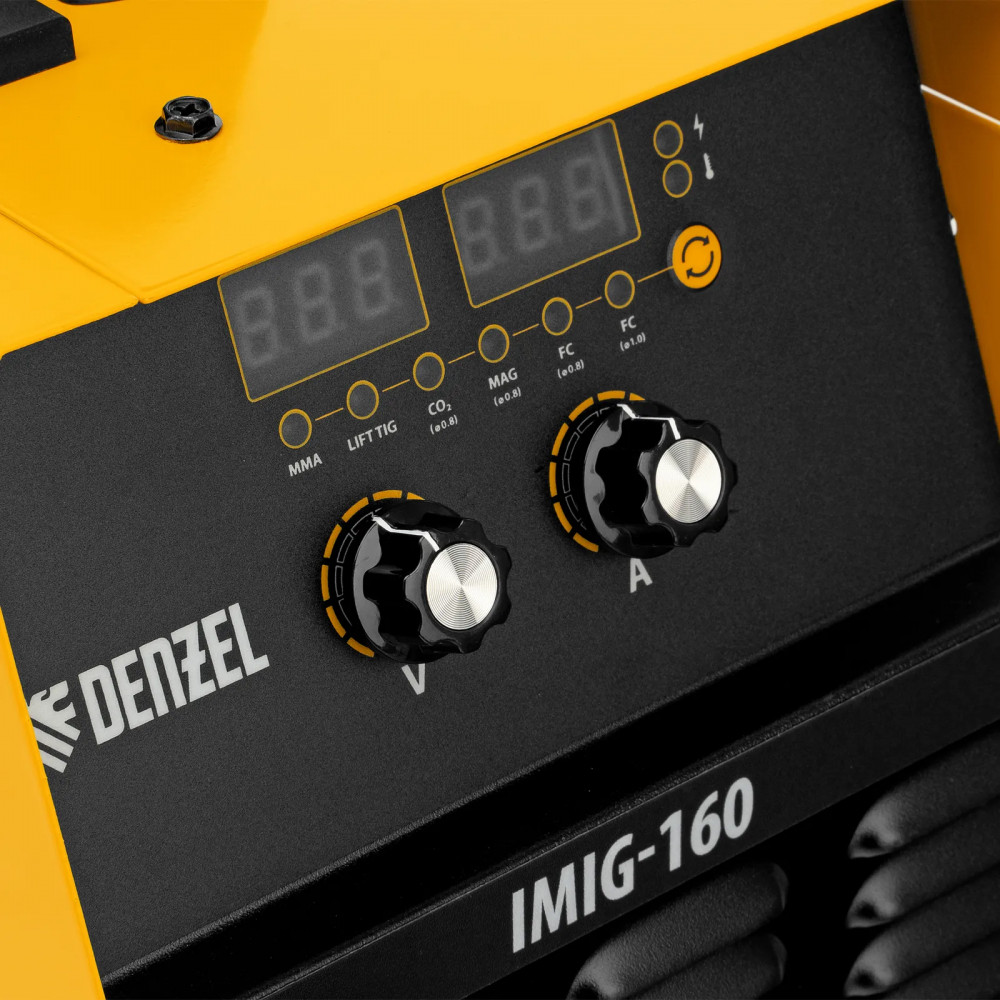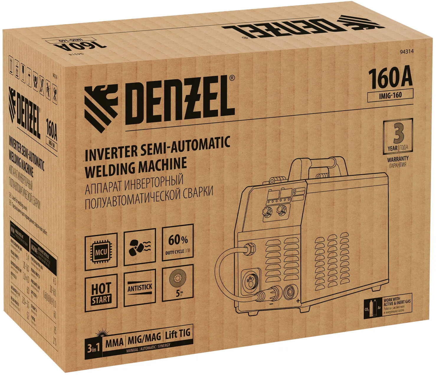 Инверторный аппарат полуавтоматической сварки Denzel IMIG-160 работает со сварочным током до 160 А, характеризуется продолжительностью включения 60% и совместим с катушками до 5 кг. Используется для сварки углеродистых и нержавеющих сталей с использованием постоянного тока. Эффективен для работы с тонкостенными заготовками.