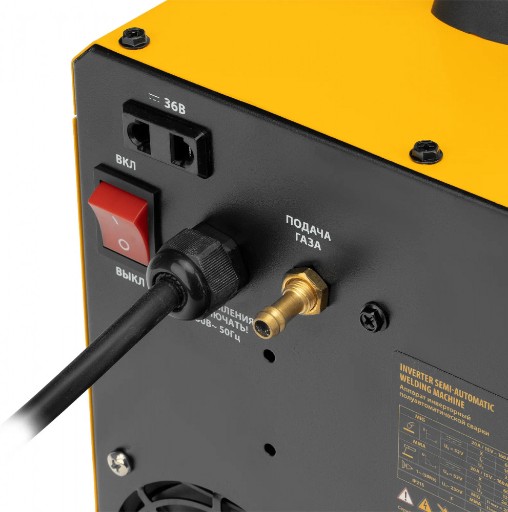 • удобная эксплуатация — длина сварочных проводов составляет 2 м, а рукава с горелкой — 2,9 м, что позволяет расширить рабочую зону;