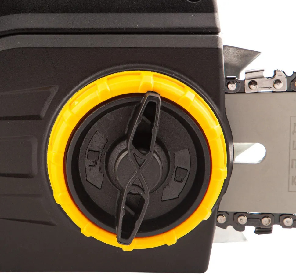• быстрая подготовка к работе — снять и зафиксировать шину, натянуть или заменить цепь можно без ключа;