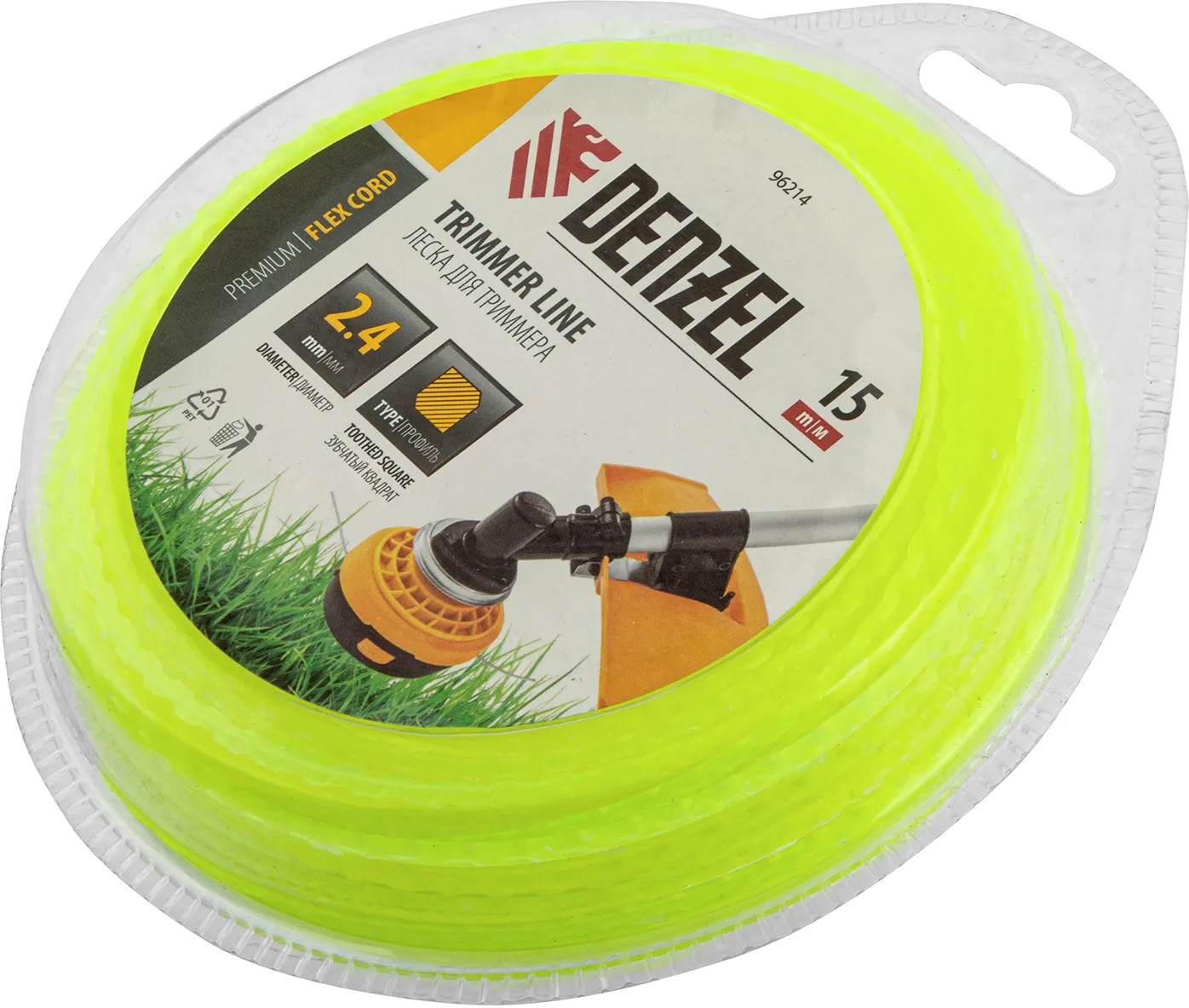 💳 Оплатить за товар можно при получении 🇰🇿 Есть бесплатная доставка по Казахстану от 1 дня 🎁 Копите бонусы с каждой покупки Леска для триммера Denzel FLEX CORD с сечением «зубчатый квадрат», размером 2,4 мм х 15 м, предназначена для скашивания крупностеблевой растительности. Благодаря форме сечения делает ровный срез травы. Используется на бензотриммерах с объемом двигателя 25-52 см3 и электротриммерах мощностью от 1 до 1,5 кВт. |