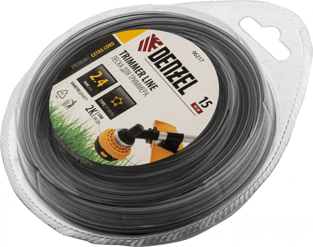 💳 Оплатить за товар можно при получении 🇰🇿 Есть бесплатная доставка по Казахстану от 1 дня 🎁 Копите бонусы с каждой покупки Двухкомпонентная леска для триммера Denzel EXTRA CORD с сечением «звезда», диаметром 2,4 мм и длиной 15 м, в блистере, предназначена для скашивания крупностеблевой растительности. Позволяет эффективно справляться с работой даже на замусоренной территории. Используется на бензиновых триммерах с объемом двигателя 25-52 см3 и электрических триммерах мощностью от 1 до 1,5 кВт. |