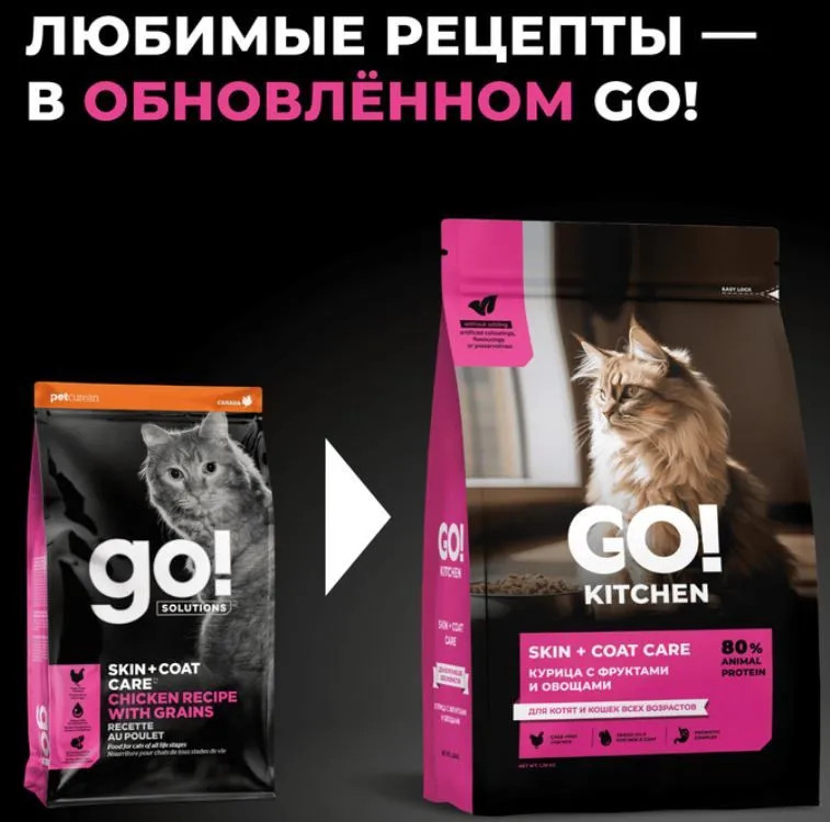 Go! Корм для кошек с цельной курицей, фруктами и овощами