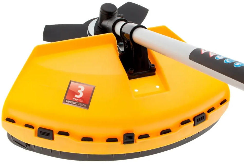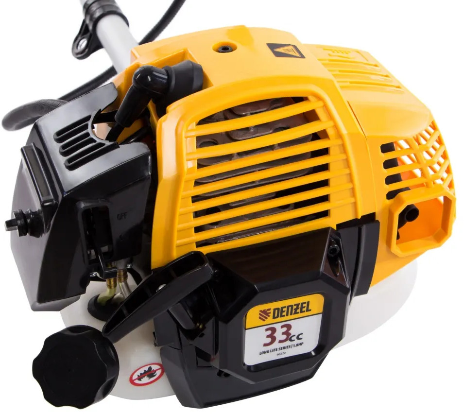 Denzel Триммер бензиновый DR-33SВ данный момент этот товар отсутствует в продаже. Возможно, у нас найдется аналогичный или похожий товар здесь. Бензиновый триммер Denzel DR-33S с двигателем объемом 33 см3 и разъемной штангой, состоит из 2 частей. Используется для ухода за газоном, скашивания травы различных типов, в том числе с жесткими стеблями (полынь, крапива, лебеда). Триммер эффективен на сложных участках: вдоль стен, в ямках и на возвышенностях, вокруг деревьев. Две режущие насадки — трехлопастный нож и катушка с леской — вращаются со скоростью 9500 об/мин, обеспечивая ширину скашивания 25,5 и 42 см. Эффективную работу инструмента обеспечивает двухтактный двигатель мощностью 1,8 л.с. При этом триммер экономично расходует топливо, поэтому часто заправлять его не придется. |