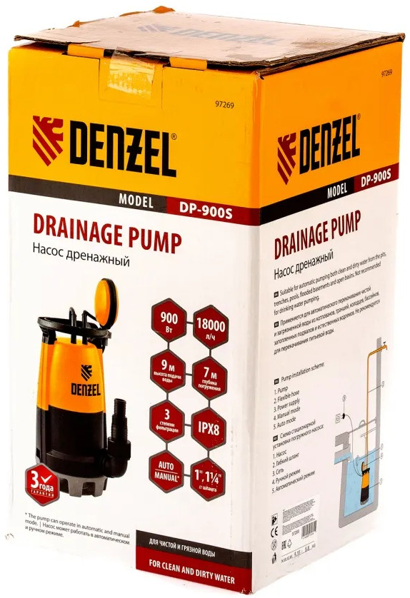 💳 Оплатить за товар можно при получении 🇰🇿 Есть бесплатная доставка по Казахстану 🎁 Копите бонусы с каждой покупки Дренажный насос Denzel DP-900S мощностью 900 Вт и производительностью 18000 л/ч обеспечивает напор 9 м и эффективно справляется с выкачиванием из затопленных помещений грязной воды с фракциями диаметром до 30 мм. Также используется для подачи чистой воды из колодцев и водоемов или организации системы полива сада и огорода. Благодаря небольшим габаритам подходит для установки в узких колодцах. |
