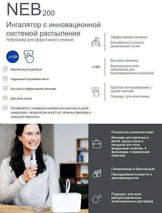 Microlife Ингалятор компрессорный Microlife NEB 200В данный момент этот товар отсутствует в продаже. Возможно, у нас найдется аналогичный или похожий товар здесь. Ингалятор с инновационной системой распыления NEB 200 Active от Microlife — это ежедневный компрессорный небулайзер, подходящий для всей семьи. Его удобный компактный размер позволяет легко транспортировать и хранить небулайзер, не занимая слишком много места. Поставляется с лицевыми масками для взрослых и детей, мундштуком, насадкой для носа, 5 шт запасных фильтров и сумка для переноски. |