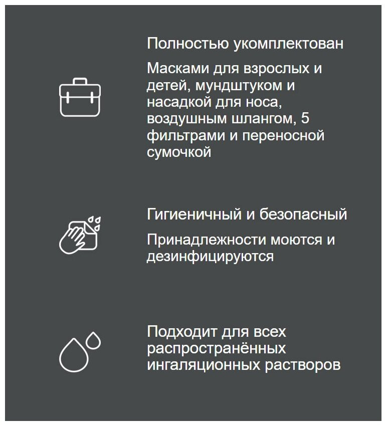 Хоть маски и две (взрослая и детская), остальные звенья аппарата в единичном экземпляре. То есть пользоваться ингалятором можно будет только одному человеку из соображения гигиены (что и рекомендовано инструкцией по эксплуатации).