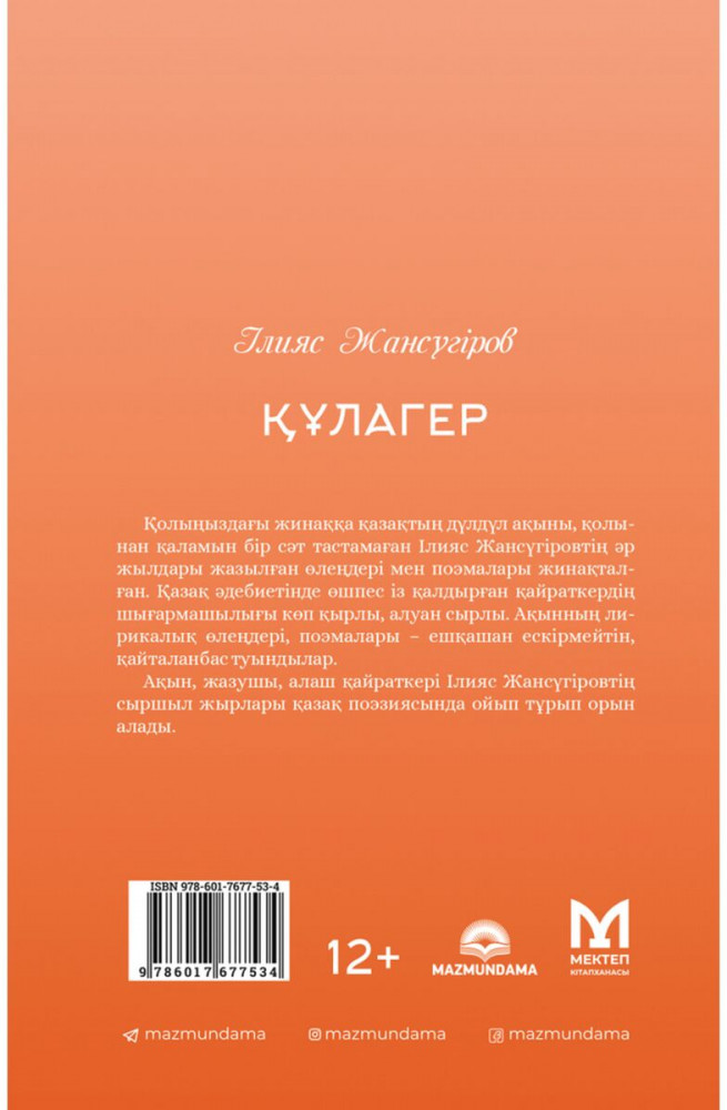 ҚұлагерВ данный момент этот товар отсутствует в продаже. Возможно, у нас найдется аналогичный или похожий товар здесь. Серия: Qazaq Poeziyasy Қолыңыздағы жинаққа қазақтың дүлдүл ақыны, қолынан қаламын бір сәт тастамаған Ілияс Жансүгіровтің әр жылдары жазылған өлеңдері мен поэмалары жинақталған. Қазақ әдебиетінде өшпес із қалдырған қайраткердің шығармашылығы көп қырлы, алуан сырлы. Ақынның лирикалық өлеңдері, поэмалары — ешқашан ескірмейтін, қайталанбас туындылар. |
