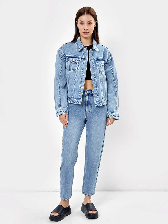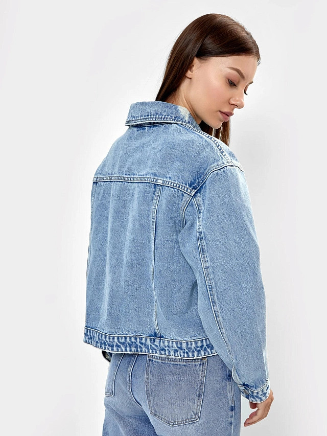 Куртка дополнена интересными деталями, которые придают ей особую привлекательность. К ним относятся накладные карманы на груди, которые не только являются функциональными элементами, но и придают куртке дополнительный шарм. Оверсайз силуэт этого джинсового жакета добавляет шика и элегантности. Она предлагает безграничные возможности для создания интересных и стильных образов. Вы можете носить ее с джинсами или юбками, сапогами или кроссовками — все зависит от вашего настроения и ситуации. Оверсайз джинсовка для женщин — это не просто одежда, это стильный акцент, который подчеркнет вашу индивидуальность. В ней вы будете чувствовать себя уверенно и модно, привлекая восхищенные взгляды.