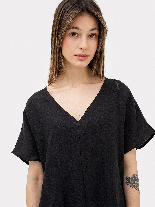 Обычно беру 48 или 50 размер. Взяла померить 46, так как больше размеров не было в наличии. Сел идеально (при фигуре, когда верх меньше, низ больше). Скрывает недостатки (животика не видно). Для льна не такая уж и плотная ткань. Покупке очень рада.