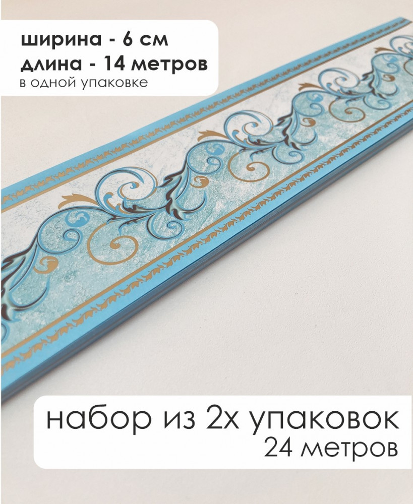 В набор входит 2 упаковки бордюра. В одной упаковке 20 лент по 70 см — общей длиной бордюра 14 метров. Ширина бордюра — 6 см. С помощью бордюра для обоев можно скрыть небольшие недостатки стен и других подобных поверхностей, а также поэкспериментировать с зонированием и сочетаниями обоев разных расцветок и стилей. Бордюр для стен не только оживит интерьер, но сделает его интересным, уютным и оригинальным.