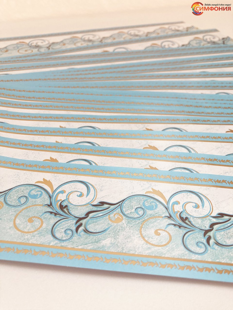 Бордюрная лента представлена в виде набора бумажных фотобордюров для декорации стыка между стеной и потолком, окон или дверных проемов.