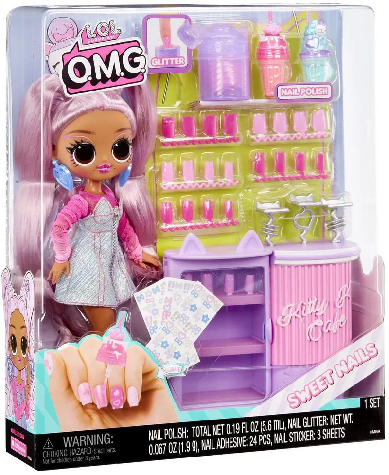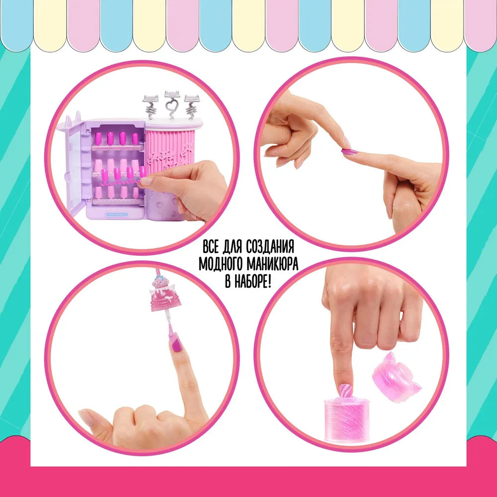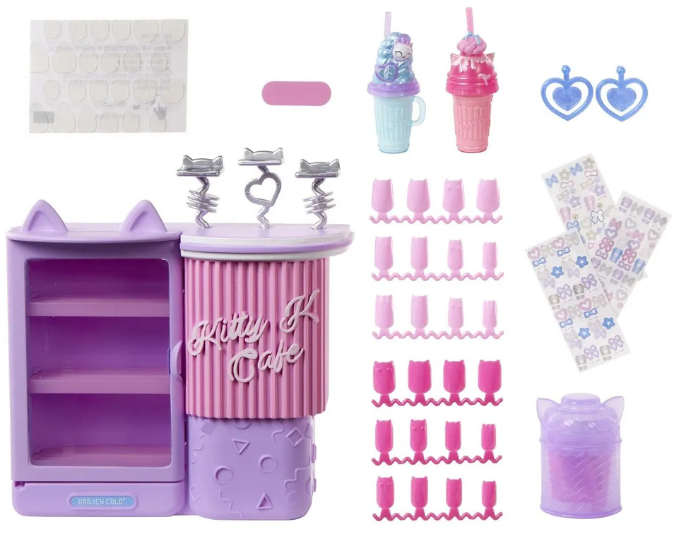 Погрузись в мир сладких сюрпризов с Китти из коллекции Sweet Nails. Помоги Китти управлять потрясающим магазином сладостей, где можно приготовить свое собственное мороженое и подавать красивые молочные коктейли, а еще сделать себе маникюр! Создавай фруктовое мороженое, молочные коктейли и украшай накладные ногти рисунками, блестками и наклейками. Этот очаровательный магазин десертов полон самых сладких сюрпризов!