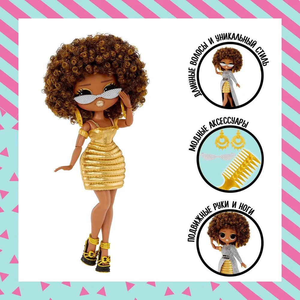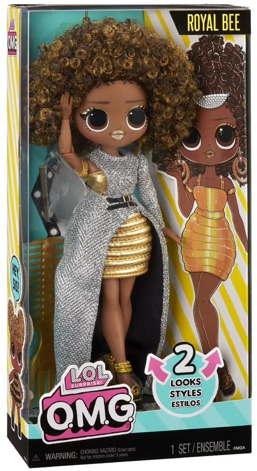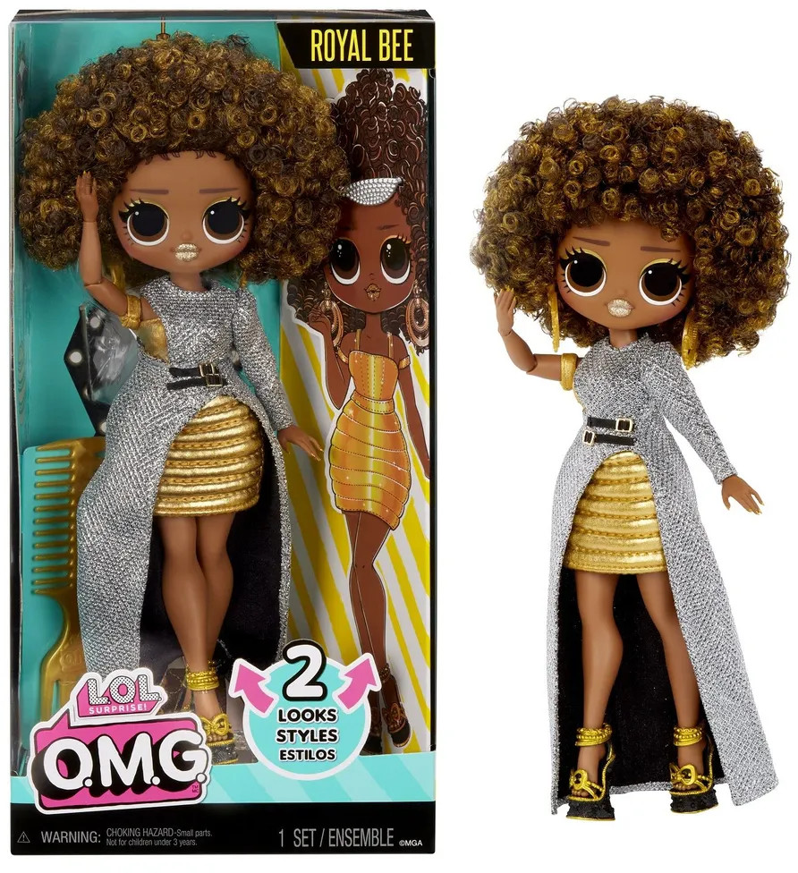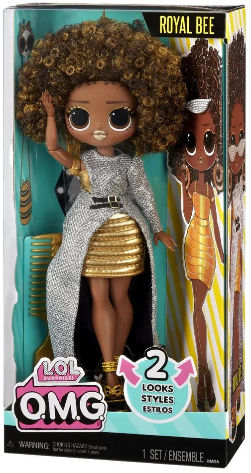 Встречай переиздание популярной коллекции L.O.L. Surprise! Героини O.M.G возвращаются в еще более ярких и стильных образах! Поздоровайся с Роял Би, законодательницей мод — она здесь, чтобы показать тебе все самое модное и сказочное. Она готова к подиуму! Оденьте Роял Би в ее ослепительное серебряное платье с двумя очаровательными черными поясами. Трансформируй! Открой для себя еще один сюрприз в стиле Роял Би и мгновенно преобрази ее наряд: найди под ее платьем сияющее золотое боди и юбку и создай совершенно новый образ! В игровом наборе: