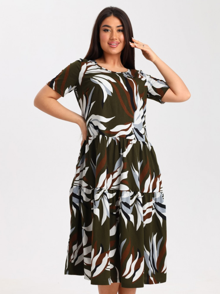 Спасибо за красивое платье в расцветке хаки! Нравится дышащая ткань кулирка - в ней не так жарко. Не угадала с размером: вместо 56 можно было и 54. На рост 168 длина платья по щиколотку, рукава тоже длинноваты. В целом, для лета пойдёт: не в обтяг значит не жарко, свободно и не будет стеснять движения))