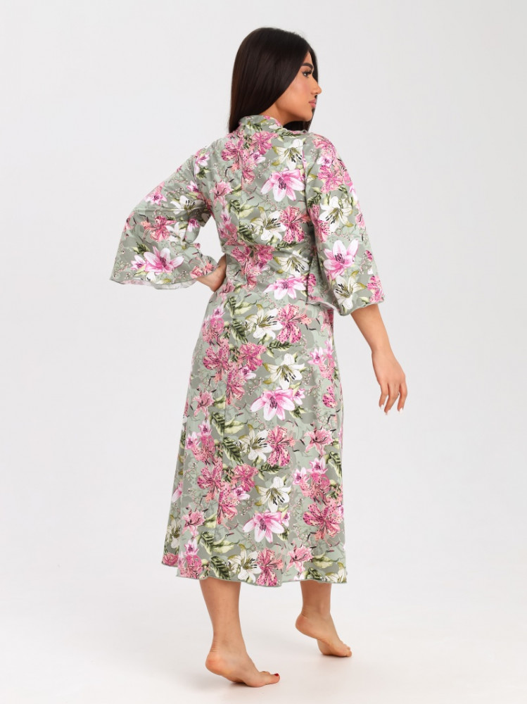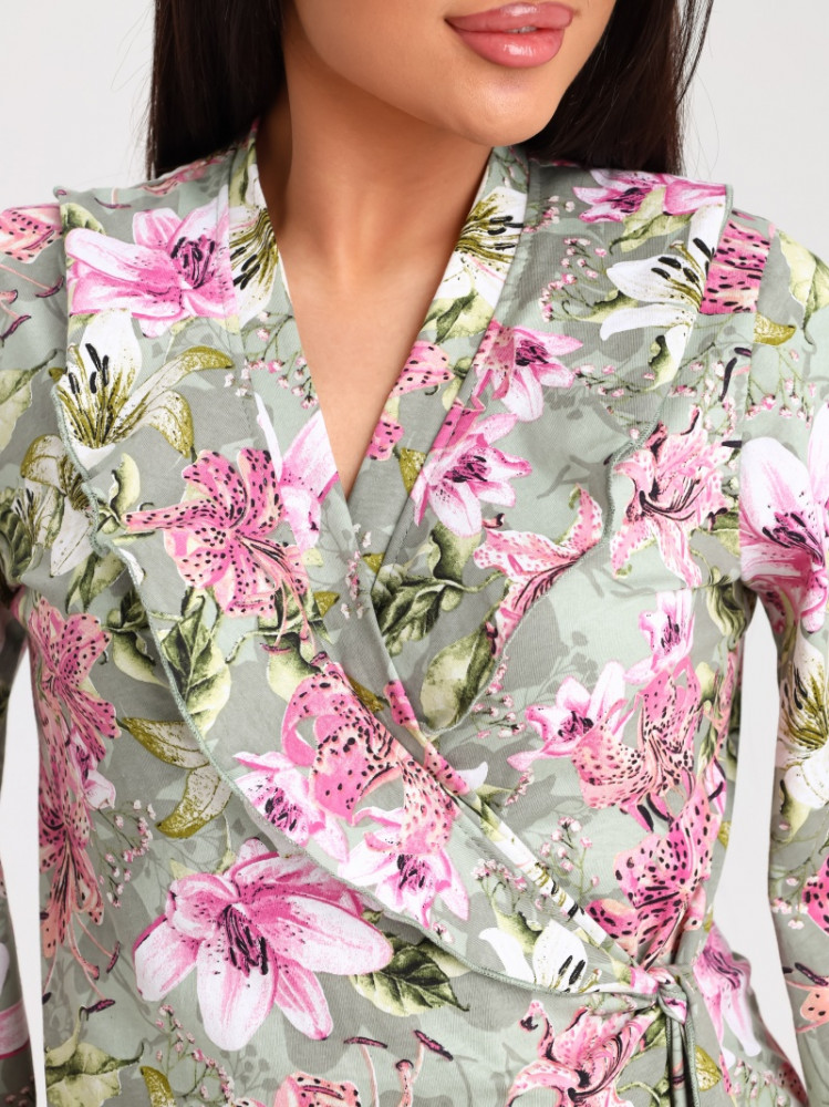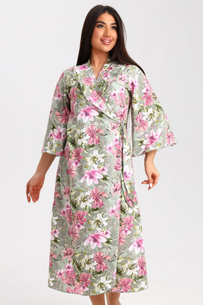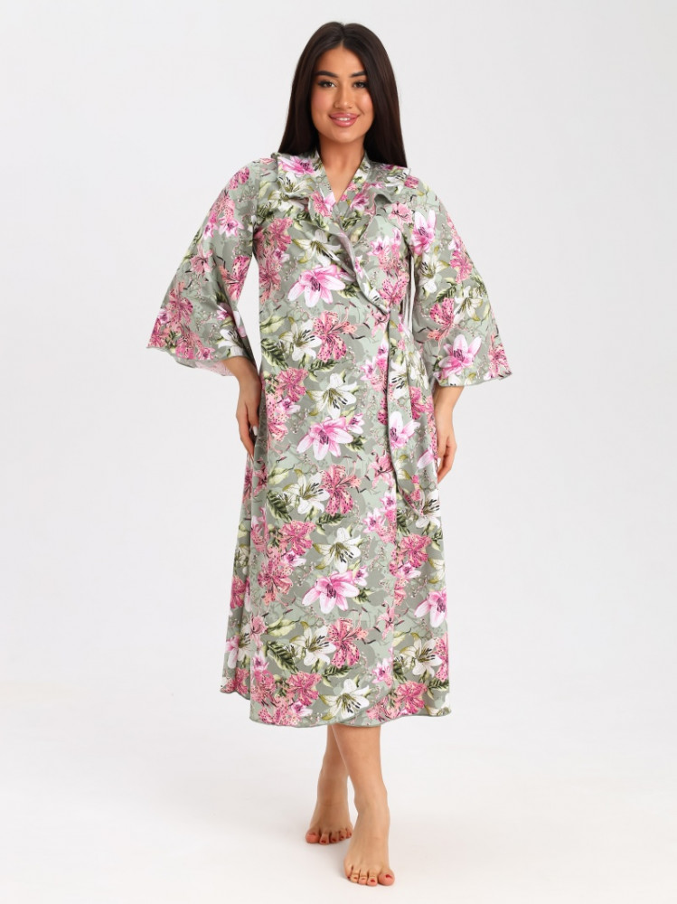 Домашний халат — это символ уюта и спокойствия. Он лидирует по популярности среди женской одежды для дома. Халат кулирка: вырез горловины V-образный, рельефы, длинный рукав, длина ниже колен.