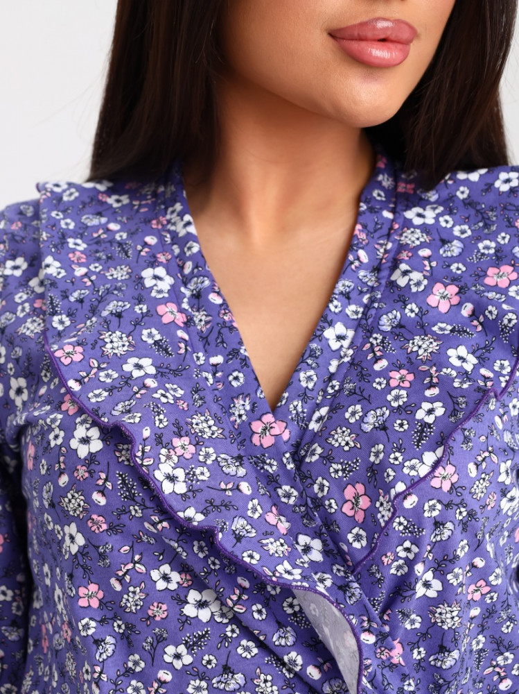 Домашний халат — это символ уюта и спокойствия. Он лидирует по популярности среди женской одежды для дома. Халат кулирка: вырез горловины V-образный, рельефы, длинный рукав, длина ниже колен.