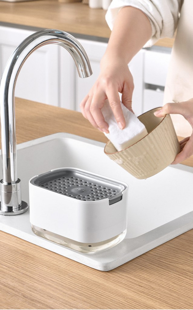 Кухонный диспенсер дозатор для моющих средств 2 в 1В данный момент этот товар отсутствует в продаже. Возможно, у нас найдется аналогичный или похожий товар здесь. Серия: Clarity Диспенсер для моющего средства - это отличное решение для тех, кто хотел бы упростить процесс мытья посуды и убрать визуальный шум на кухне и у раковины. Дозатор моющего средства представляет собой универсальный гаджет 2 в 1, который позволяет использовать его как емкость для хранения моющего средства и лоток для хранения губки. Кухонная система для хранения и использования моющего средства выполнена из высококачественных материалов, что обеспечивает долголетие и безопасность пользователя. Гаджет для моющего средства состоит из полочки хранения губки с отверстиями для стекания воды с губки, крышки/лотка выполняющей функцию сбора водного раствора с губки и крышки емкости хранения моющего средства, помпы подачи моющего средства, которая обеспечивает экономную и равномерную подачу его на губку, бочка для хранения моющего средства. |