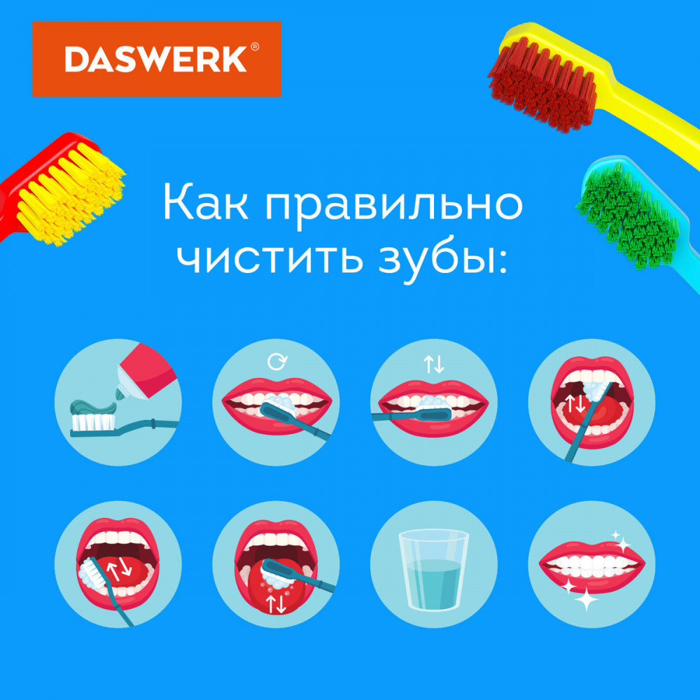 Набор зубных щёток Daswerk — это идеальное решение для ухода за полостью рта и профилактики здоровья зубов для всей семьи.