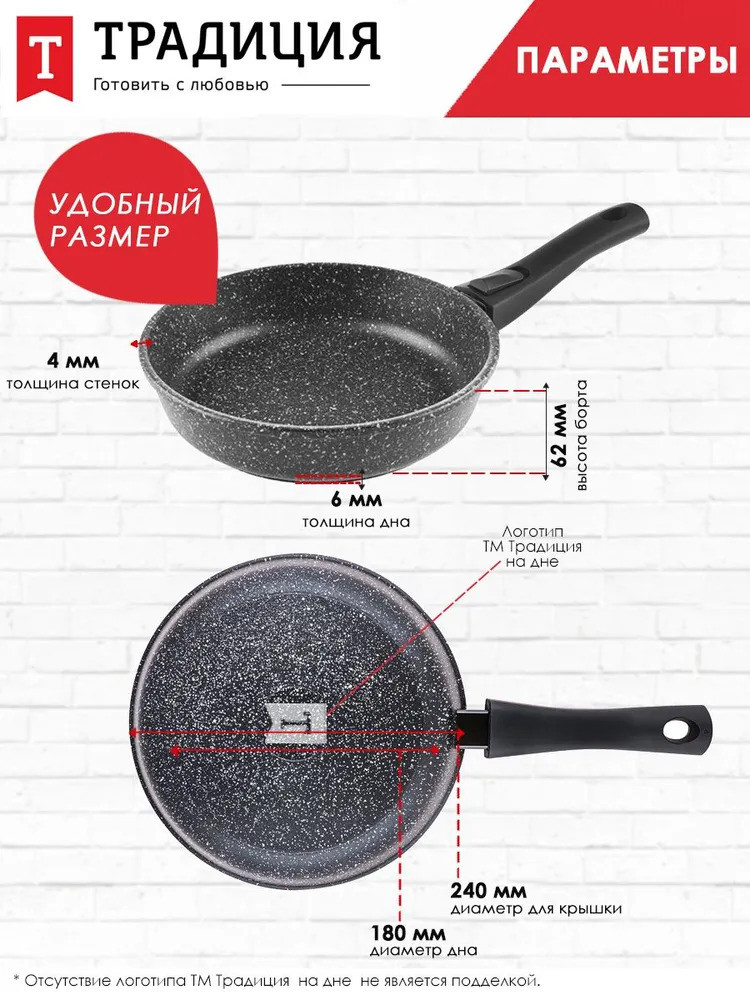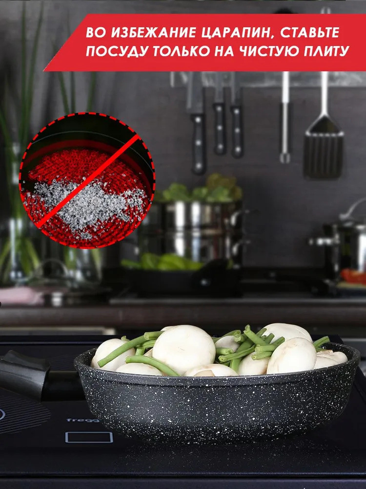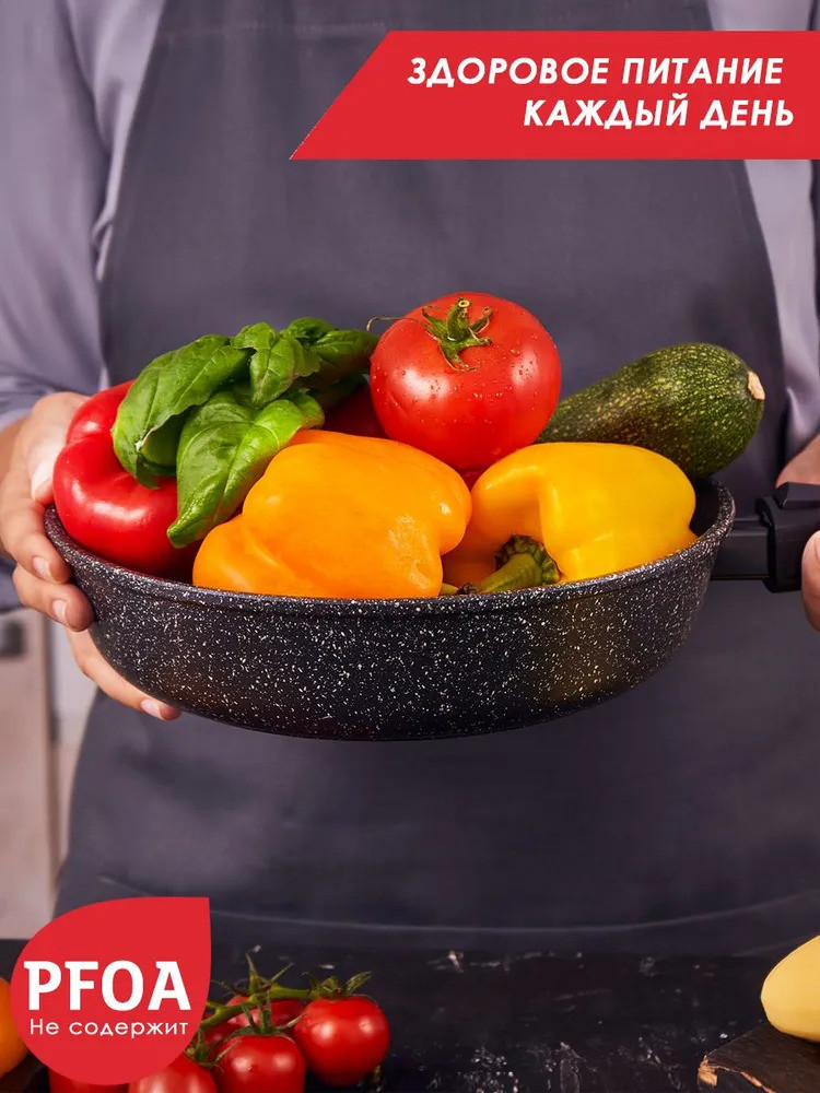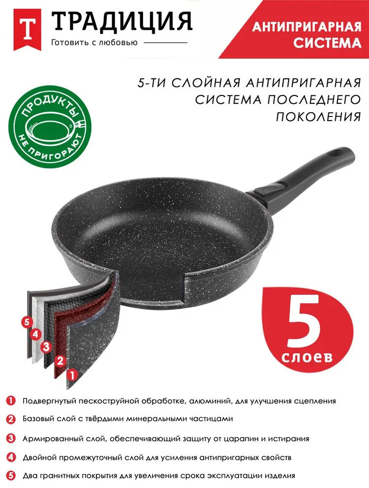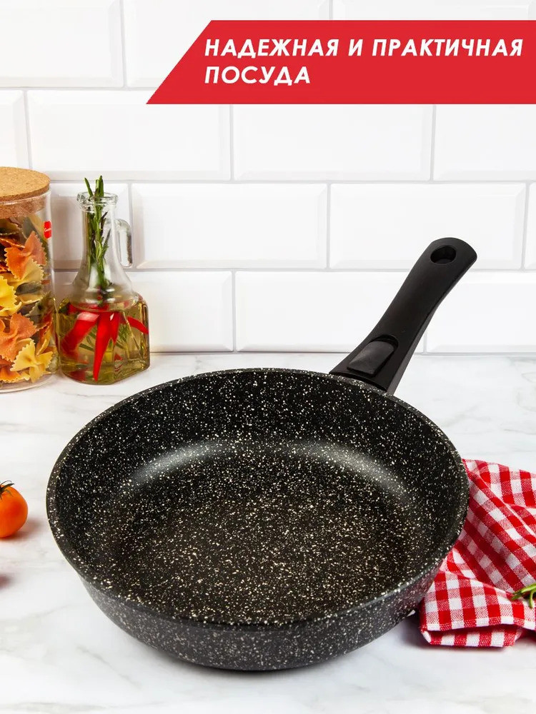 Сковорода со съемной ручкой "Гранит" 20 см. классная. Борта высокие, что делает сковороду практичной. Покупала много посуды кухонной этого бренда и очень довольна качеством.