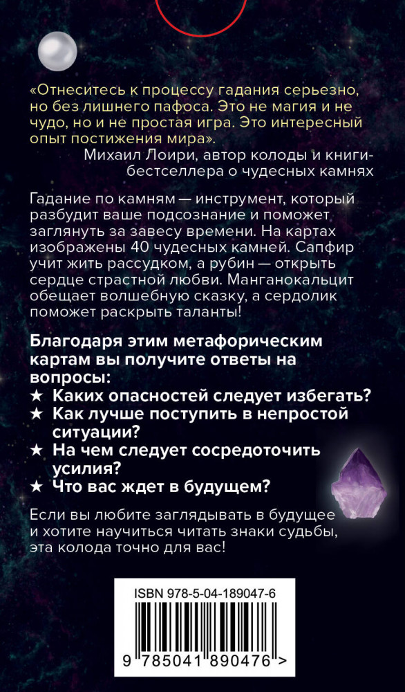 💳 Оплатить за товар можно при получении 🇰🇿 Есть бесплатная доставка по Казахстану от 1 дня 🎁 Копите бонусы с каждой покупки Серия: Внутренняя опора. Метафорические карты для обретения счастья «Чудесные камни. Метафорические карты для поиска верного пути» — новинка от коллекционера Михаила Лоири, автора бестселлера «Чудесные камни. 250 минералов: история, свойства, скрытые особенности». Эта колода собрала 40 самых лучших минералов из коллекции автора, которые обладают настоящей магической силой. Метафорические карты с изображением камней ответят на самые сокровенные вопросы о личной жизни, внесут ясность в случае неразрешимых проблем, предостерегут от трудностей и укажут верный путь. Гадание по камням, или литопрогноз, помогает разбудить подсознание человека, чтобы он смог услышать советы старших товарищей, которые существуют на земле миллионы лет. Дополнительная информация в конце колоды станет подтверждением мудрости каждого камня, ведь благодаря интересным фактам в приложении вы сможете узнать, какие легенды слагались о минералах и почему именно к их прогнозам стоит прислушаться. |