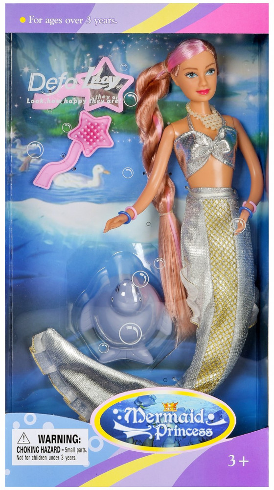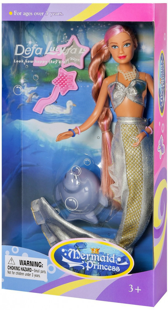 Defa Кукла «Lucy Принцесса-русалочка с волшебной прядью волос»В данный момент этот товар отсутствует в продаже. Возможно, у нас найдется аналогичный или похожий товар здесь. Очаровательная кукла Русалочка LUCY DEFA непременно понравится любой девочке и завоюет ее любовь с первого взгляда. Кукла одета в великолепный блестящий костюм русалочки, украшенный полосой с золотым чешуйчатым узором. На груди русалочки красуется ожерелье, на каждую руку одеты 2 браслета. У куклы длинные волосы, их можно расчесывать и создавать различные прически. Одна прядь волос — волшебная, ее цвет изменится при контакте с теплой водой. Подвижные руки, ноги и голова позволяют придавать кукле различные позы. Дополняют набор фигурка морского котика, расческа и зеркальце. Игрушка выполнена из качественных и безопасных материалов. Такая кукла будет отличным подарком для девочки! |