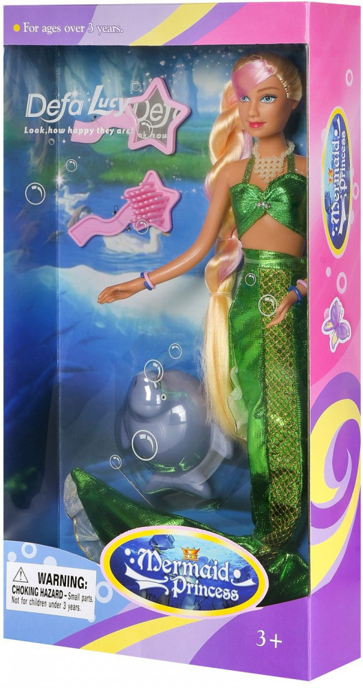 Defa Кукла «Lucy Принцесса-русалочка с волшебной прядью волос»В данный момент этот товар отсутствует в продаже. Возможно, у нас найдется аналогичный или похожий товар здесь. Очаровательная кукла Русалочка LUCY DEFA непременно понравится любой девочке и завоюет ее любовь с первого взгляда. Кукла одета в великолепный блестящий костюм русалочки, украшенный полосой с золотым чешуйчатым узором. На груди русалочки красуется ожерелье, на каждую руку одеты 2 браслета. У куклы длинные волосы, их можно расчесывать и создавать различные прически. Одна прядь волос — волшебная, ее цвет изменится при контакте с теплой водой. Подвижные руки, ноги и голова позволяют придавать кукле различные позы. Дополняют набор фигурка морского котика, расческа и зеркальце. Игрушка выполнена из качественных и безопасных материалов. Такая кукла будет отличным подарком для девочки! |