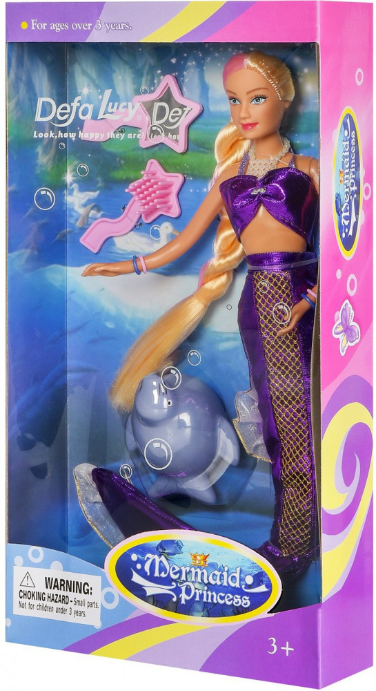 Defa Кукла «Lucy Принцесса-русалочка с волшебной прядью волос»В данный момент этот товар отсутствует в продаже. Возможно, у нас найдется аналогичный или похожий товар здесь. Очаровательная кукла Русалочка LUCY DEFA непременно понравится любой девочке и завоюет ее любовь с первого взгляда. Кукла одета в великолепный блестящий костюм русалочки, украшенный полосой с золотым чешуйчатым узором. На груди русалочки красуется ожерелье, на каждую руку одеты 2 браслета. У куклы длинные волосы, их можно расчесывать и создавать различные прически. Одна прядь волос — волшебная, ее цвет изменится при контакте с теплой водой. Подвижные руки, ноги и голова позволяют придавать кукле различные позы. Дополняют набор фигурка морского котика, расческа и зеркальце. Игрушка выполнена из качественных и безопасных материалов. Такая кукла будет отличным подарком для девочки! |