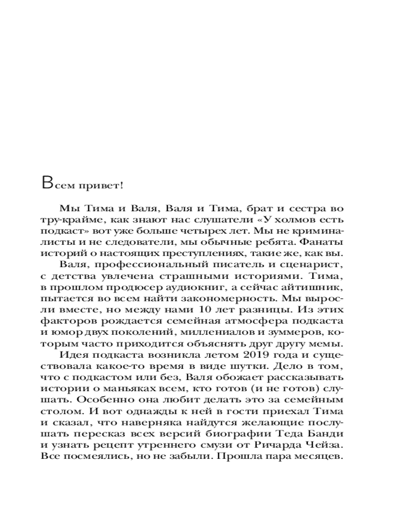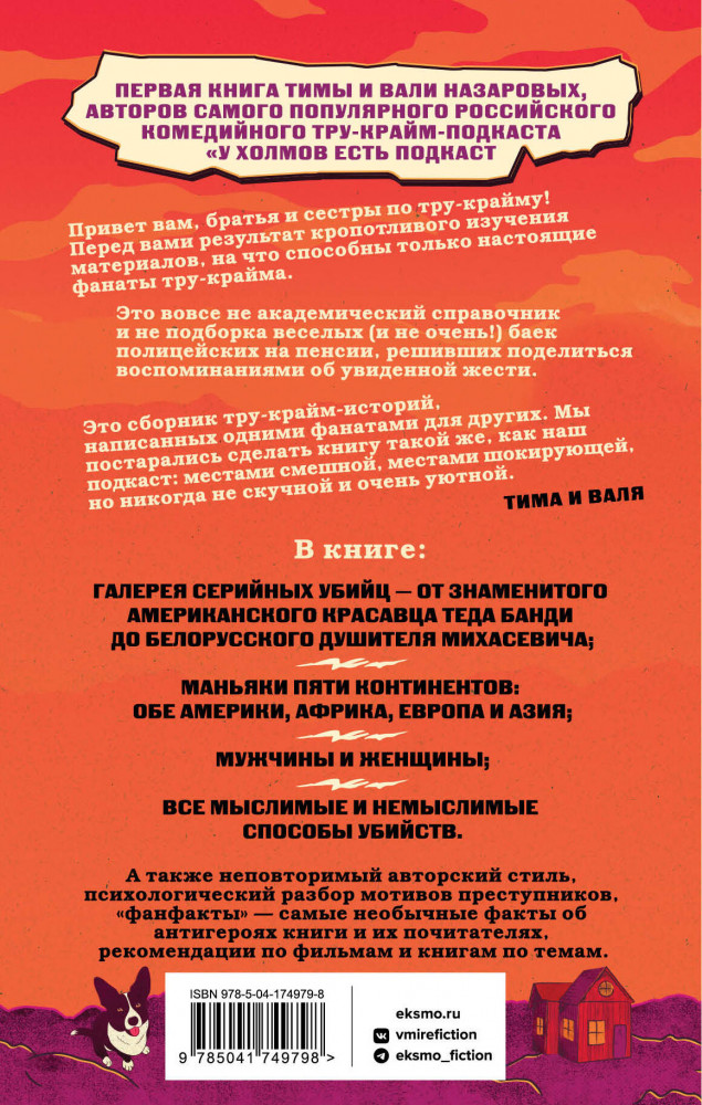 💳 Оплатить за товар можно при получении 🇰🇿 Есть бесплатная доставка по Казахстану от 1 дня 🎁 Копите бонусы с каждой покупки Серия: Портрет психопата. Профайлер о серийных убийцах Перед вами результат кропотливого изучения материалов, на что способны только настоящие фанаты тру-крайма. Это вовсе не академический справочник и не подборка веселых (и не очень!) баек полицейских на пенсии, решивших поделиться воспоминаниями об увиденной жести. Это сборник тру-крайм историй, написанных одними фанатами для других. Мы постарались сделать книгу такой же, как наш подкаст: местами смешной, местами шокирующей, но никогда не скучной и очень уютной«. — Тима и Валя |