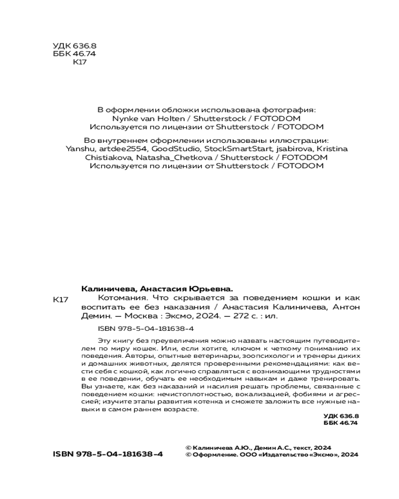 Котомания. Что скрывается за поведением кошки и как воспитать ее без наказанияАнастасия Юрьевна Калиничева, Антон Сергеевич Демин -20% +146