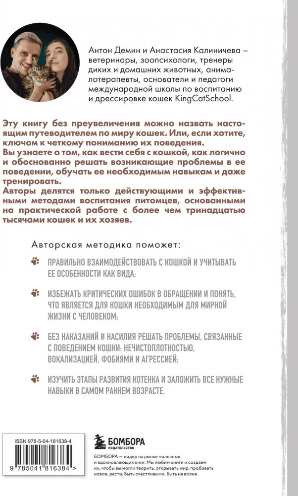 💳 Оплатить за товар можно при получении 🇰🇿 Есть бесплатная доставка по Казахстану от 1 дня 🎁 Копите бонусы с каждой покупки Серия: Домашние питомцы. Уход, здоровье, воспитание Если ваш кот вместо нежного приветствия бросается из-за угла, распушив свой хвост и вонзая когти в гостя, кошка в ваше отсутствие вызывает громким мяуканьем в соседях гнев, а на порог — полицию, а поведение котенка разочаровывает с каждым днем, то эта книга для вас! Авторы — опытные ветеринары, зоопсихологи и тренеры диких и домашних животных. Они являются основателями и педагогами международной школы по воспитанию и дрессировке кошек KingCatSchool. Они предлагают уникальный путеводитель по миру кошек, который поможет вам лучше понять их поведение. В нем вы найдете полезные советы о том, как правильно общаться с кошкой и решать возникающие проблемы. Авторы делятся своими эффективными методами воспитания кошек, основанными на многолетнем опыте работы с тысячами питомцев и их хозяев. |