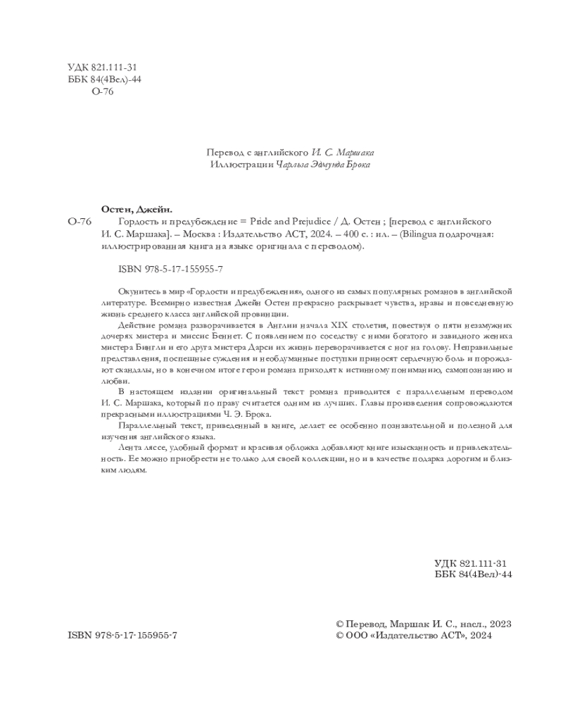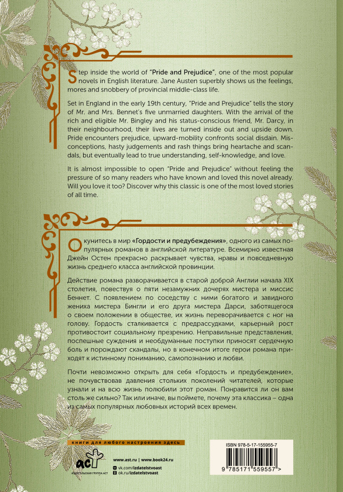 💳 Оплатить за товар можно при получении 🇰🇿 Есть бесплатная доставка по Казахстану от 1 дня 🎁 Копите бонусы с каждой покупки Серия: Bilingua подарочная: иллюстрированная книга на языке оригинала с переводом Окунитесь в мир «Гордости и предубеждения», одного из самых популярных романов в английской литературе. Всемирно известная Джейн Остен прекрасно раскрывает чувства, нравы и повседневную жизнь среднего класса английской провинции. Действие романа разворачивается в Англии начала XIX столетия, повествуя о пяти незамужних дочерях мистера и миссис Беннет. С появлением по соседству с ними богатого и завидного жениха мистера Бингли и его друга мистера Дарси их жизнь переворачивается с ног на голову. Неправильные представления, поспешные суждения и необдуманные поступки приносят сердечную боль и порождают скандалы, но в конечном итоге герои романа приходят к истинному пониманию, самопознанию и любви. |