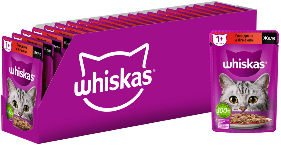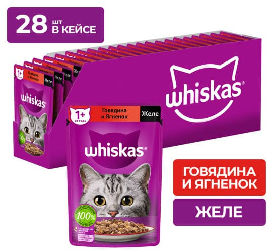 Whiskas Набор паучей для кошек «Желе с говядиной и ягненком»