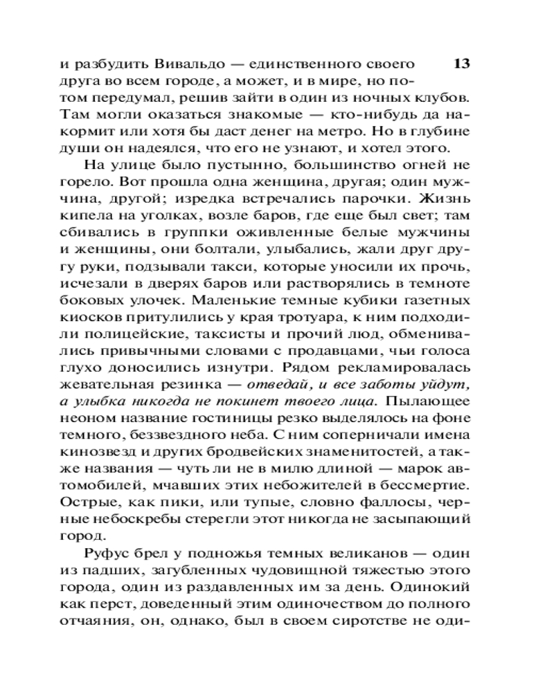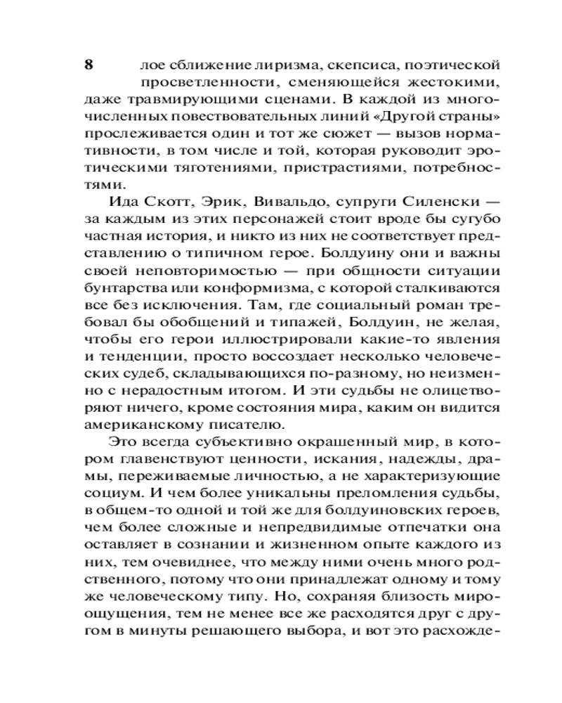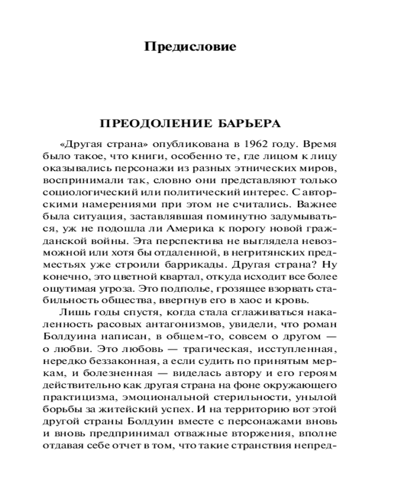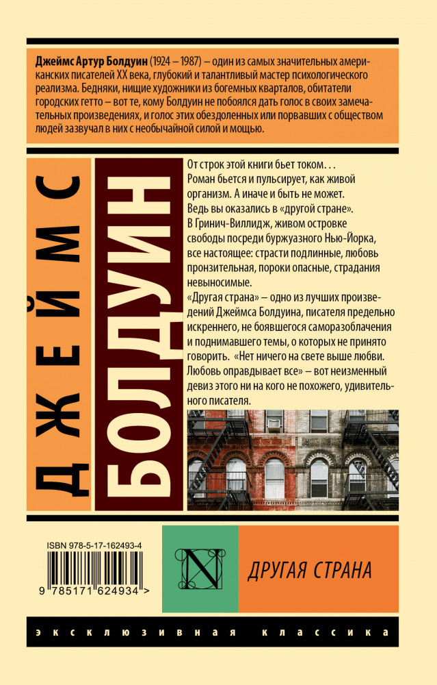 Другая странаВ данный момент этот товар отсутствует в продаже. Возможно, у нас найдется аналогичный или похожий товар здесь. Серия: Эксклюзивная классика От строк этой книги бьет током... Роман бьется и пульсирует, как живой организм. А иначе и быть не может. Ведь вы оказались в «другой стране». В Гринич-Виллидж, живом островке свободы посреди буржуазного Нью-Йорка, все настоящее: страсти подлинные, любовь пронзительная, пороки опасные, страдания невыносимые. «Другая страна» — одно из лучших произведений Джеймса Болдуина, писателя предельно искреннего, не боявшегося саморазоблачения и поднимавшего темы, о которых не принято говорить. «Нет ничего на свете выше любви. Любовь оправдывает все» — вот неизменный девиз этого ни на кого не похожего, удивительного писателя. |