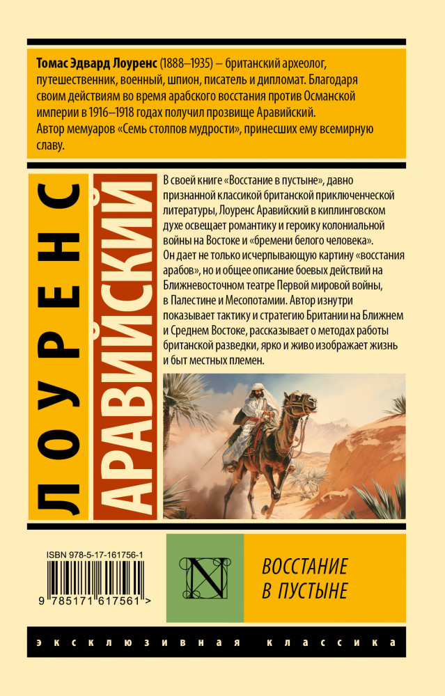 💳 Оплатить за товар можно при получении 🇰🇿 Есть бесплатная доставка по Казахстану от 1 дня 🎁 Копите бонусы с каждой покупки Серия: Эксклюзивная классика Томас Эдвард Лоуренс (1888-1935) — британский археолог, путешественник, военный, шпион, писатель и дипломат. Благодаря своим действиям во время арабского восстания против Османской империи в 1916-1918 годах получил прозвище Аравийский. Автор мемуаров «Семь столпов мудрости», принесших ему всемирную славу. |