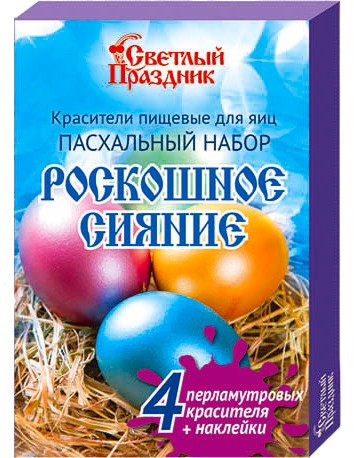 Светлый Праздник Набор красителей для яиц «Роскошное сияние»В данный момент этот товар отсутствует в продаже. Возможно, у нас найдется аналогичный или похожий товар здесь. Этот набор станет настоящей палочкой-выручалочкой как для начинающих кулинаров, так и для опытных хозяек. Отлично подходят для окрашивания яиц. Содержат более 90% натуральных компонентов в составе. Без вкуса и запаха. Термо- и светостойкие. Быстро внедряются в основу. |