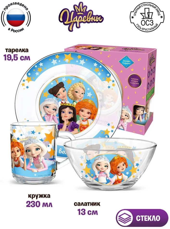 💳 Оплатить за товар можно при получении 🇰🇿 Есть бесплатная доставка по Казахстану от 1 дня 🎁 Копите бонусы с каждой покупки Серия: Царевны Набор посуды «Царевны», Звезды (3 предмета, подарочная упаковка), стекло — отличный подарок ребенку! |
