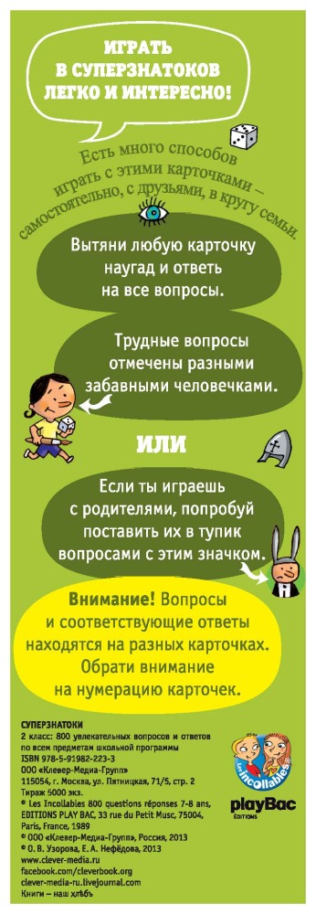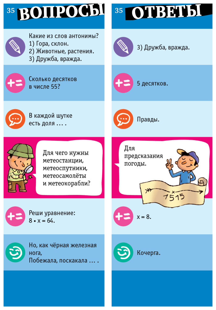 Замечательная игра. Учит мыслить не стандартно, расширяет кругозор, заставляет задуматься не только детей, но и родителей (вспомнить школьный материал, наверстать пробелы). Советую не только родителям и детям, но и учителям начальной школы.